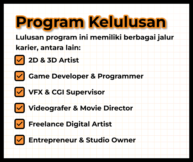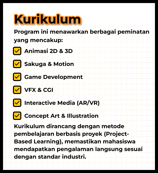 “Dengan fasilitas yang lengkap dan kurikulum yang up-to-date, saya bisa mengembangkan kemampuan saya di bidang animasi dengan lebih baik.”